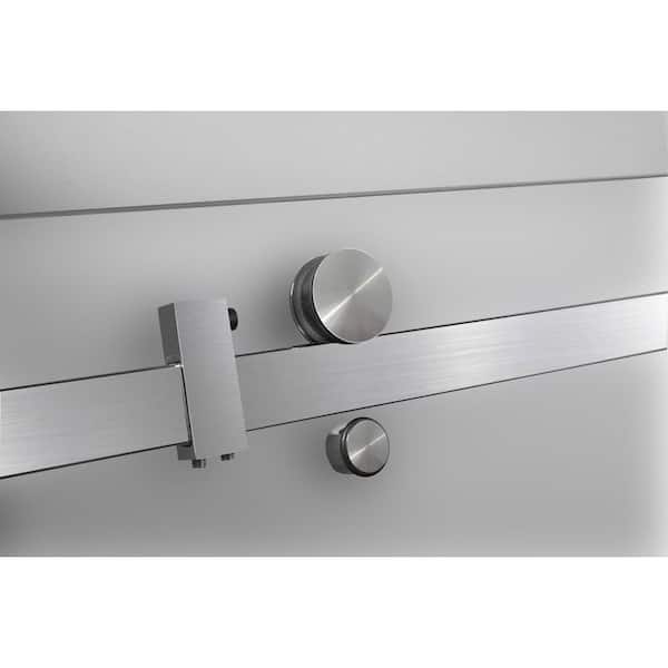 Moselle 48 in. x 35 in. x 77.5 in. Frameless Sliding Shower Enclosure and Frosted in Stainless Steel with Right Base