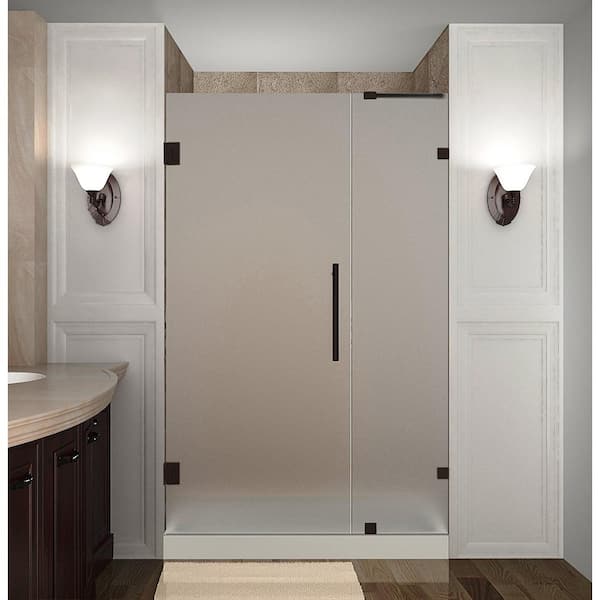 Nautis 44.25 - 45.25 in. x 72 in. Frameless Hinged Shower Door with Frosted Glass in New Bronze