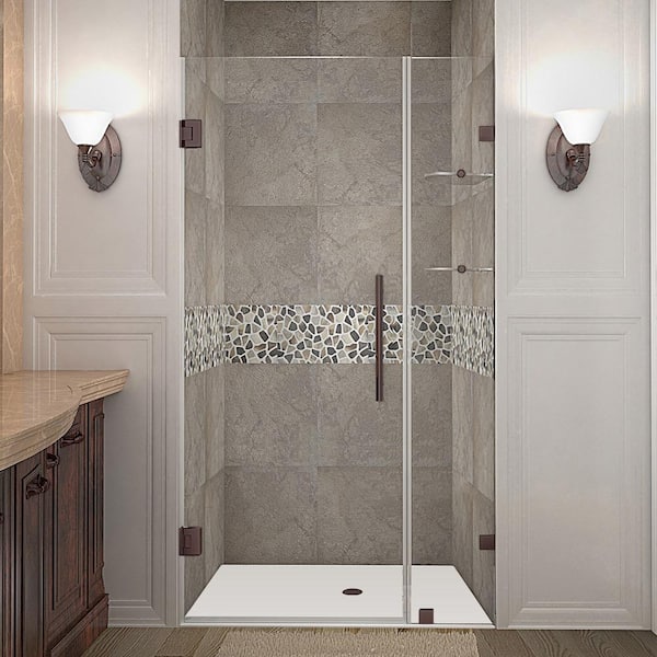 Nautis GS 39.25 - 40.25 in. x 72 in. Frameless Hinged Shower Door with Glass Shelves in New Bronze