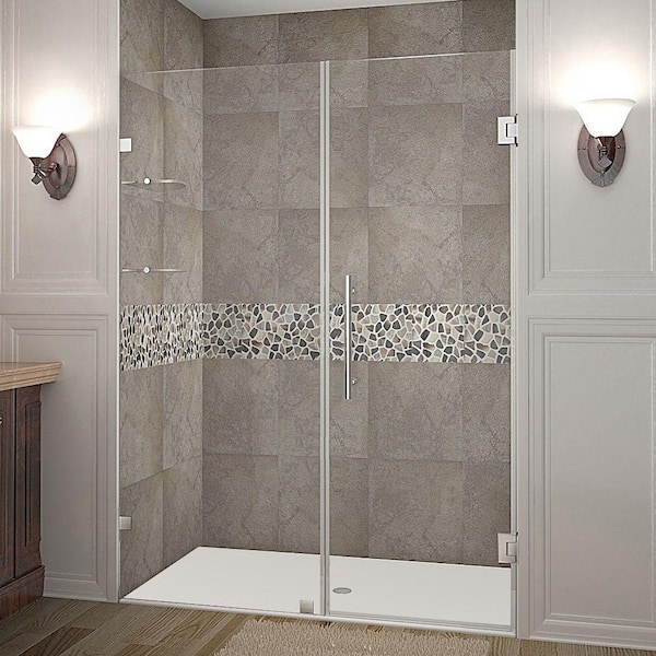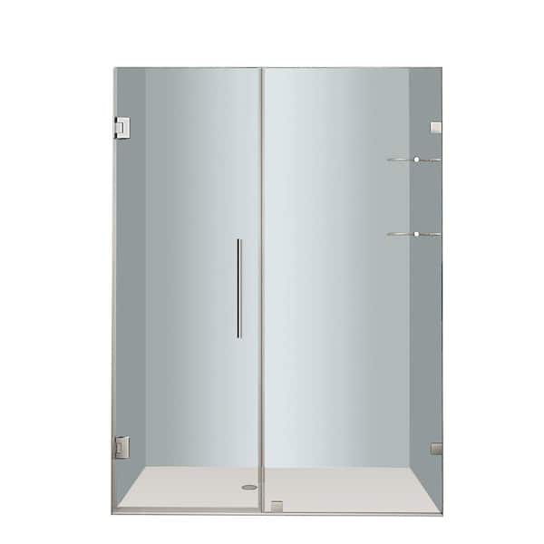 Nautis GS 56 in. x 72 in. Frameless Hinged Shower Door in Stainless Steel with Glass Shelves