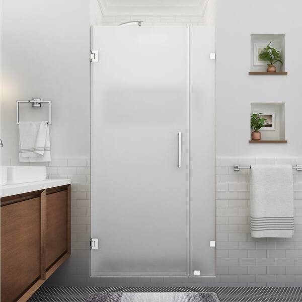 Nautis XL 30.25 - 31.25 in. W x 80 in. H Hinged Frameless Shower Door in Polished Chrome with Ultra-Bright Frosted Glass