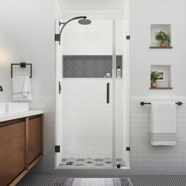 Nautis XL 37.25 - 38.25 in. W x 80 in. H Hinged Frameless Shower Door in Matte Black with Clear StarCast Glass