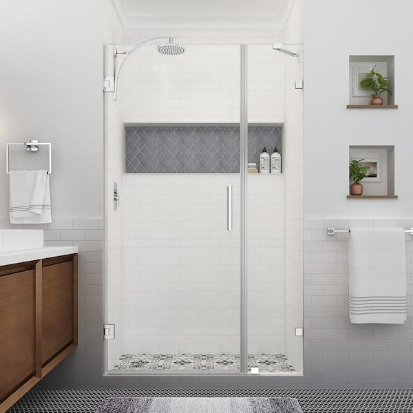 Nautis XL 44.25 - 45.25 in. W x 80 in. H Hinged Frameless Shower Door in Polished Chrome with Clear StarCast Glass