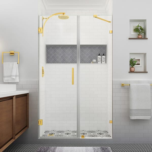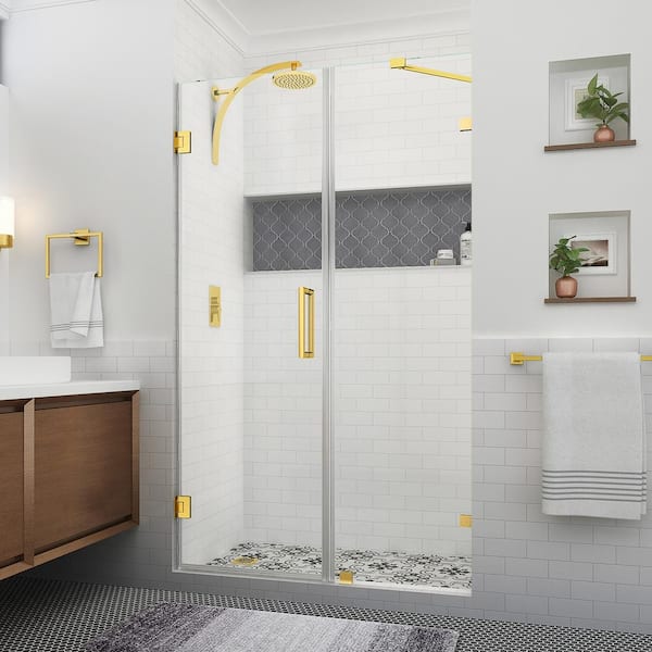 Nautis XL 52.25 - 53.25 in. W x 80 in. H Hinged Frameless Shower Door in Brushed Gold with Clear StarCast Glass