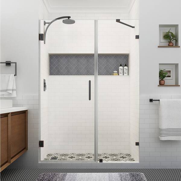Nautis XL 54.25 in. to 55.25 in. W x 80 in. H Hinged Frameless Shower Door in Oil Rubbed Bronze w/Clear StarCast Glass