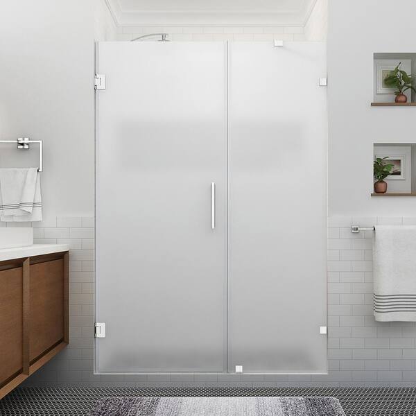 Nautis XL 55.25 - 56.25 in. W x 80 in. H Hinged Frameless Shower Door in Stainless Steel w/Ultra-Bright Frosted Glass
