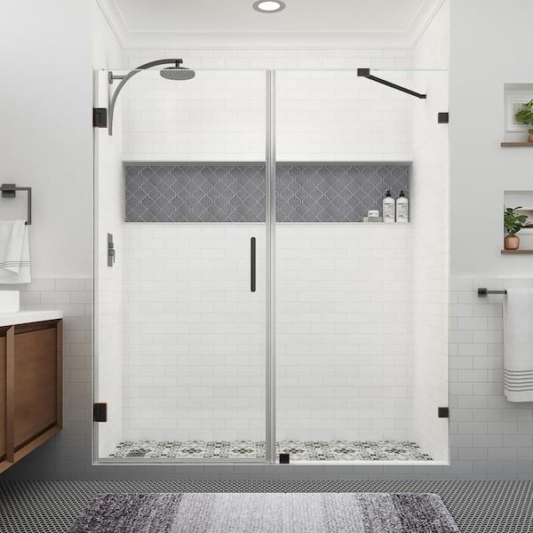 Nautis XL 70.25 to 71.25 in. W x 80 in. H Hinged Frameless Shower Door in Oil Rubbed Bronze with Clear StarCast Glass