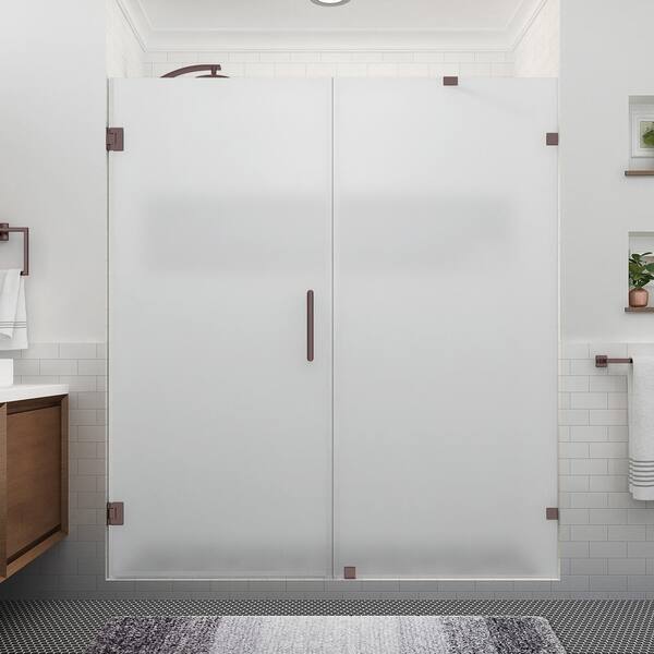 Nautis XL 74.25 to 75.25 in. W x 80 in. H Hinged Frameless Shower Door in Bronze with Ultra-Bright Frosted Glass