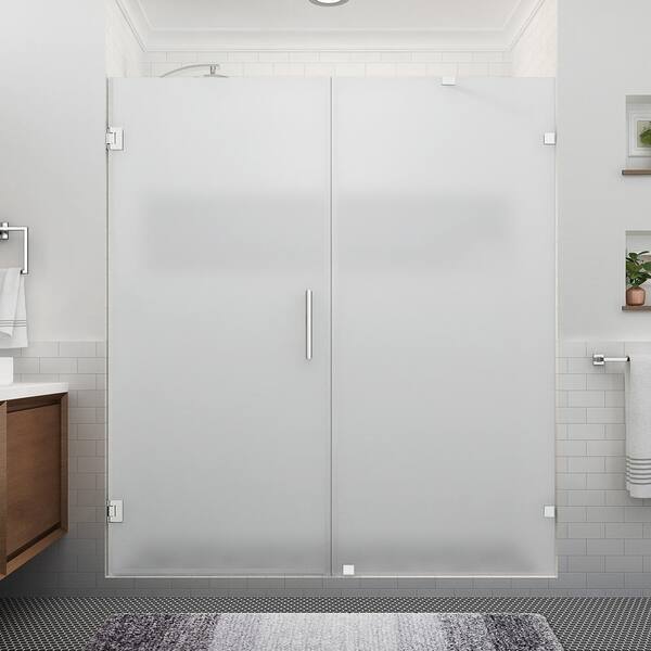Nautis XL 75.25 to 76.25 in. W x 80 in. H Hinged Frameless Shower Door in Polished Chrome w/Ultra-Bright Frosted Glass