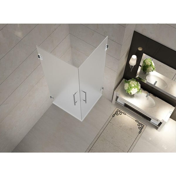 Vanora 38 in. x 38 in. x 72 in. Completely Frameless Square Shower Enclosure with Frosted Glass in Stainless Steel