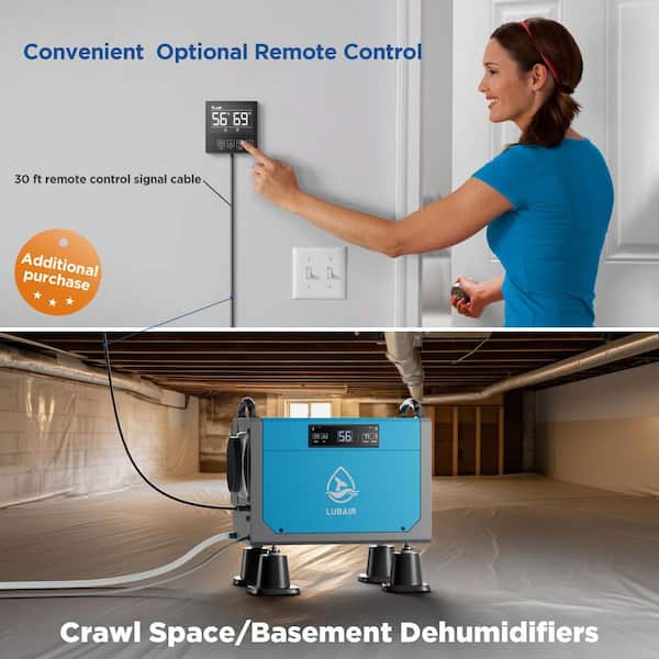 120 pt. 5500 sq. ft. Bucketless Commercial Dehumidifier in Blue with Memory Start,Remote Control for Basement,Crawlspace