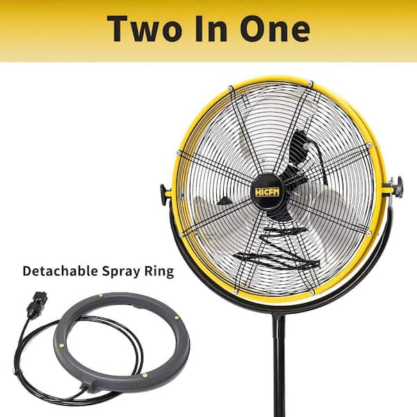 4400 CFM 20 in. Outdoor Misting Fan in Yellow Pedestal Standing Base with IP44 Enclosed Motor, 180° Tilted Head
