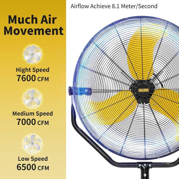 7600 CFM 30 in. High Velocity Tilted Pedestal Fan in yellow