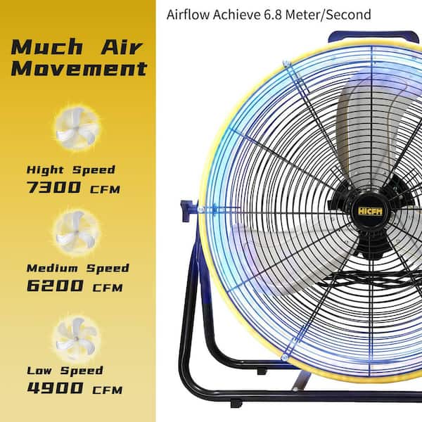 8200 CFM 24 in. Portable High Velocity Drum Fan in Yellow With Powerful 1/3 HP Motor, Turbo Blade, 9ft Power Cord