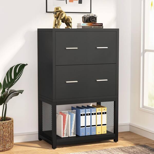 Atencio Black Lateral File Cabinet Printer Stand with Letter / Legal / A4 Size
