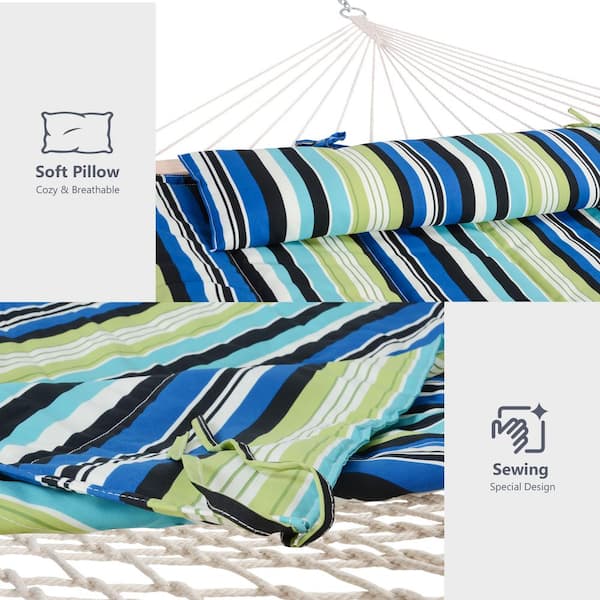 10-15 ft. Portable Hammock With Detachable Pad and Pillow, Blue and Green