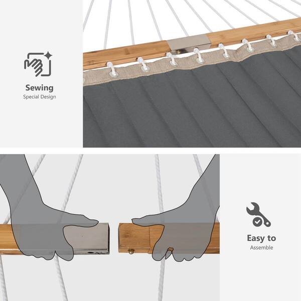 10 ft. Quilted 2-Person Hammock Bed with Stand, up to 475-Capacity, Pillow Included, Dark Gray