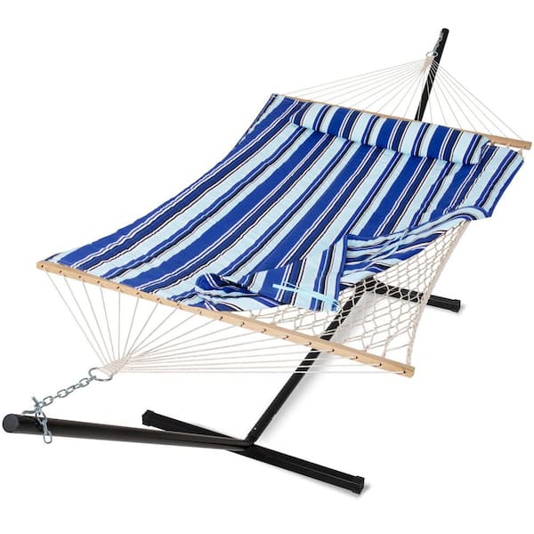 10 ft. x 12 ft. Quilted Rope Hammock and 12 ft. Steel Stand with Detachable Pillow, Blue Stripe