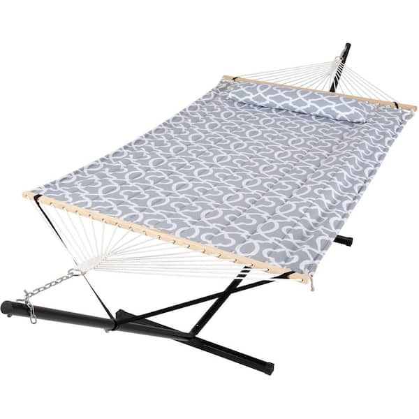 12 ft. Free Standing, 475 lbs. Capacity, Heavy-Duty 2-Person Hammock with Stand and Detachable Pillow in Grey