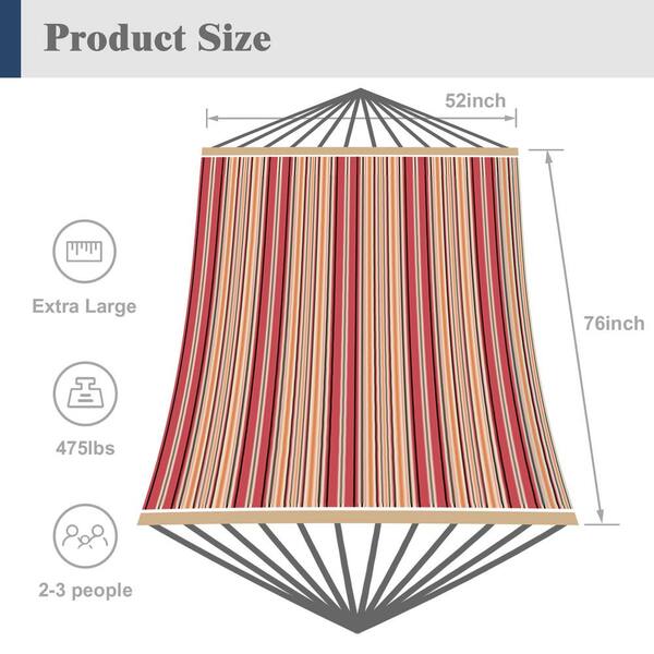 12 ft. Quilted Free Standing 2-Person Hammock with Stand and Detachable Pillow in Red Stripe