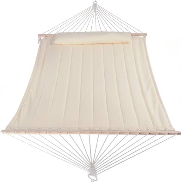 12 ft. to 15 ft. Quilted Double 2-Person Hammock with Hardwood Spreader Bar and Pillow in Beige