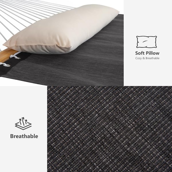 55.1 in. x 78.7 in. Quick Dry Fabric Hammock and 12 ft. Steel Stand with Matching Pillow in Sling-Dark Gray