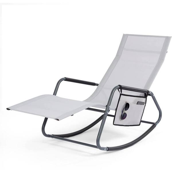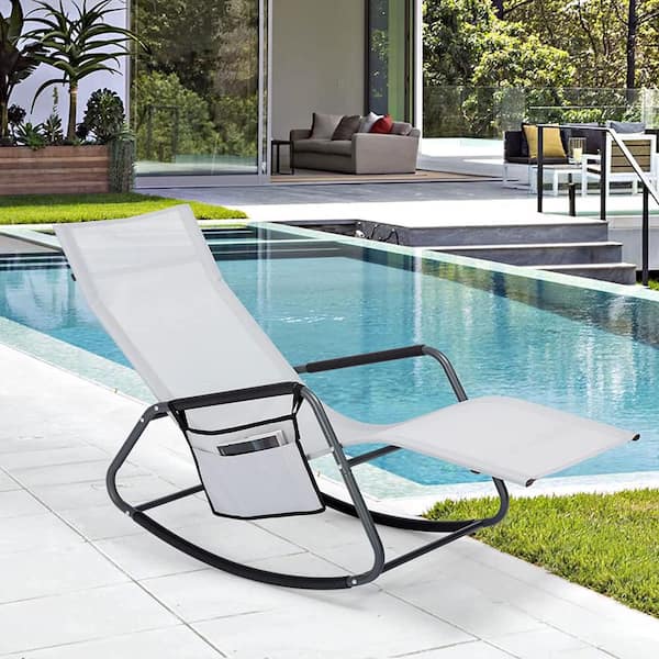 Fabric Outdoor Lounge Chair, Chaise Lounge for Patio and Lawn, Pool Lounge Chairs with Side Pocket, Light Grey