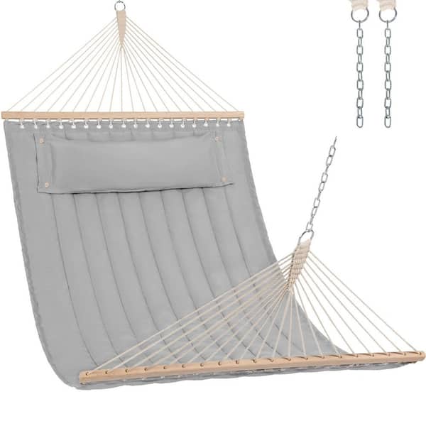 Quilted Hammock with Spreader Bars and Detachable Pillow, 78.7 in. x 55 in. L Hammock Bed, 450 lbs. Capacity, Light Gray