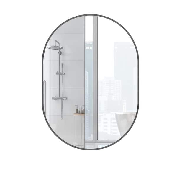 Athena 20 in. W x 28 in. H Small Oval Aluminum Framed Wall Bathroom Vanity Mirror in Brushed Black