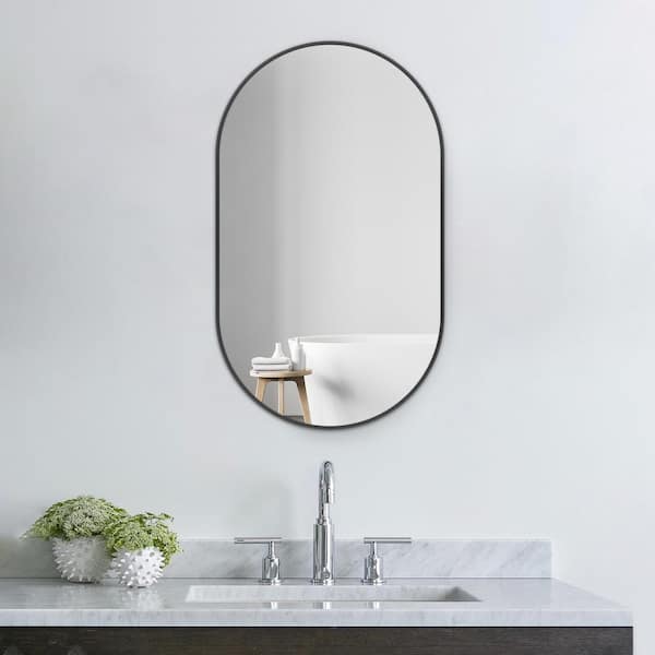 Athena 20 in. W x 33 in. H Small Oval Aluminum Framed Wall Bathroom Vanity Mirror in Brushed Black