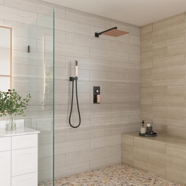 Athens 2-Spray Patterns 10 in. Wall Mount Fixed and Handheld Shower Head 2.5 GPM in Black and Rose Gold Valve Included