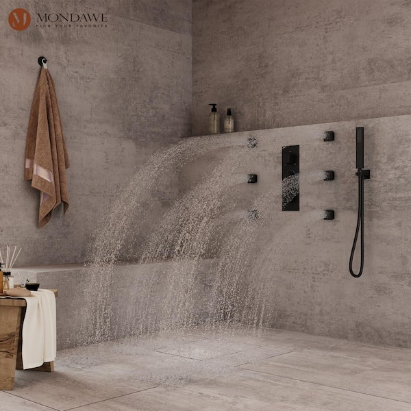 Athens Multiple 5-Spray Patterns Dual 12 in. Ceiling Mount Rainfall Shower Heads 2.5 GPM with 6-Jet Valve in Matte Black