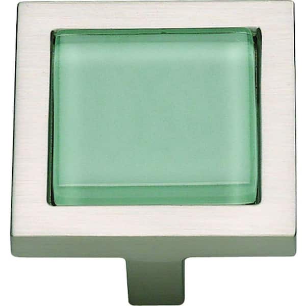 Spa Collection 1-3/8 in. Brushed Nickel With Green Glass Inset Square Cabinet Knob