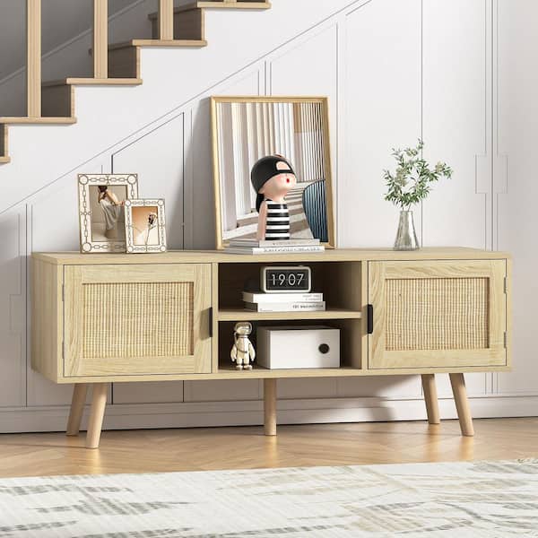 47 in. Natural Oak TV Stand Fits TVs Up to 55 in. Entertainment Cabinet Media Console with Storage Doors