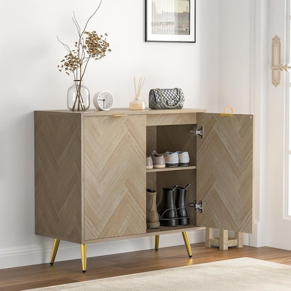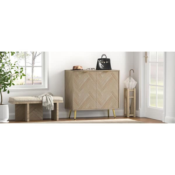 Natural Oak Accent Storage Cabinet Free-Standing with 2-Doors Modern Sideboard Buffet Cabinet