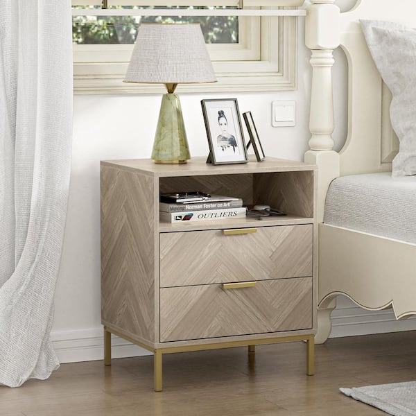 Oak 2 Drawer 19.8 in. W Nightstand for Bedroom