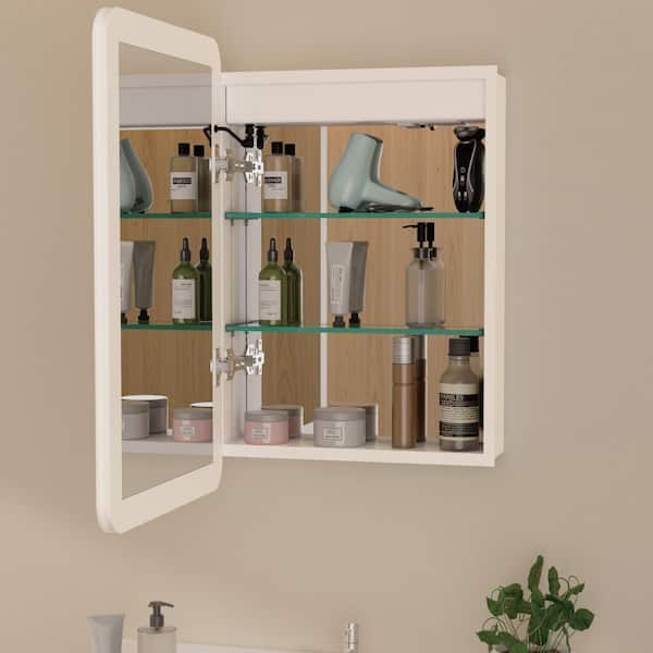 Aura 20 in. W x 28 in. H Rectangular Aluminum Recessed/Surface Mount Dimmable Medicine Cabinet with Mirror, Left Hinge