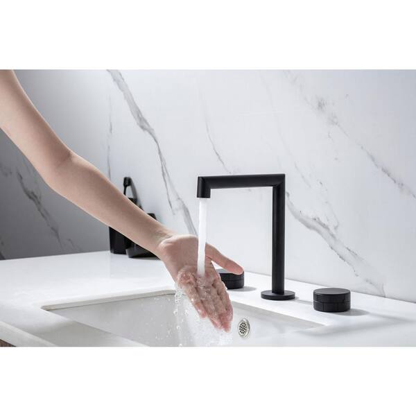 ABA 8 in. Widespread Double Handle 3 hole bathroom vanity faucet in matte black