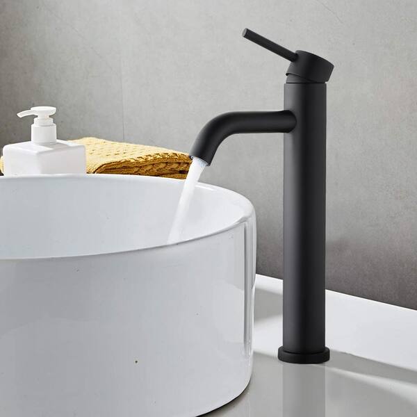 ABA Single Hole Single Handle High Spout Bathroom Faucet in Matte black with Ceramic Valve