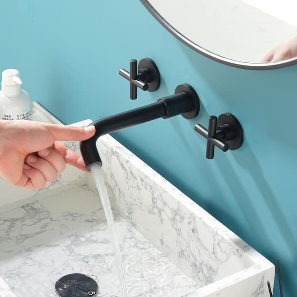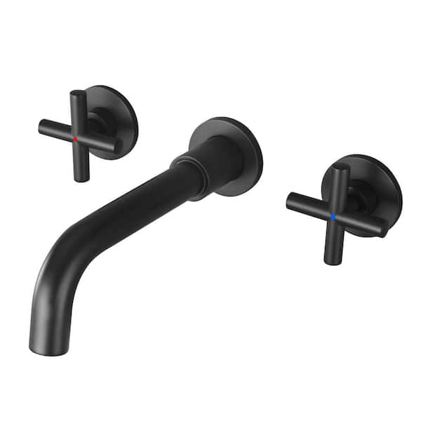 ABAD Three Hole double-Handle Wall Mount Bathroom Faucet in Matte Black