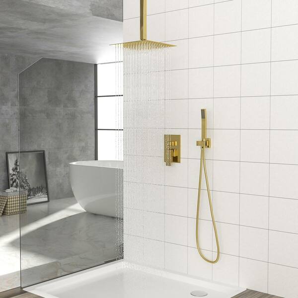 ACA Single-Handle 1-Spray Square High Pressure Shower Faucet 10 Inches 304 Stainless in Brushed Gold(Valve Included)