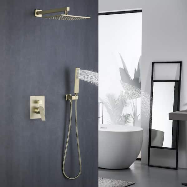 ACA Single-Handle 1-Spray Square High Pressure Shower Faucet in Brushed Gold (Valve Included)