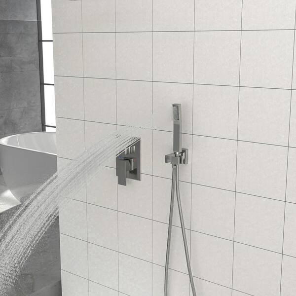 ACA Single-Handle 2-Spray Patterns Square Shower Faucet with 1.8 GPM 10 in. in Ceiling Mount in Brushed Nickel