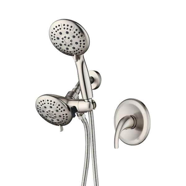 ACA Single-Handle 6-Spray Patterns with 1.8 GPM 4.5 in. Wall Mount Dual Round Shower Faucet in Brushed Nickel