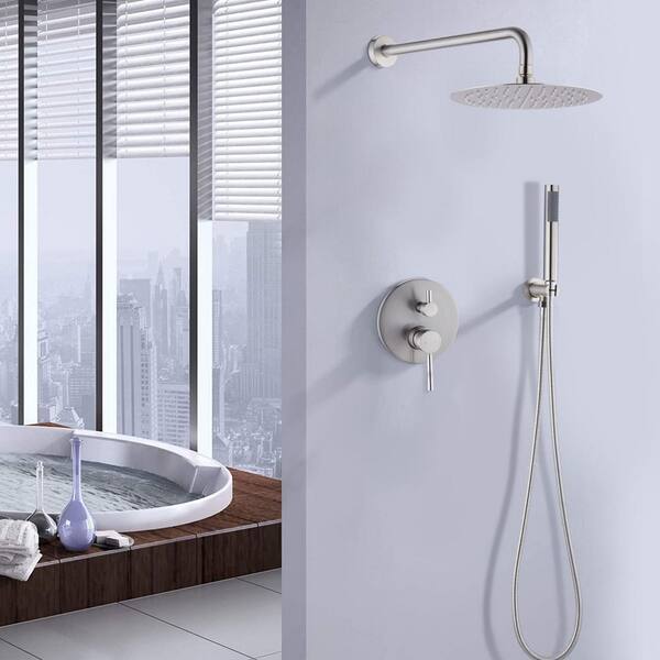 ACAD 2-Handle 2-Spray Round High Pressure Shower Faucet with 10 in. Rain Shower Head in Brushed Nickel (Valve Included)