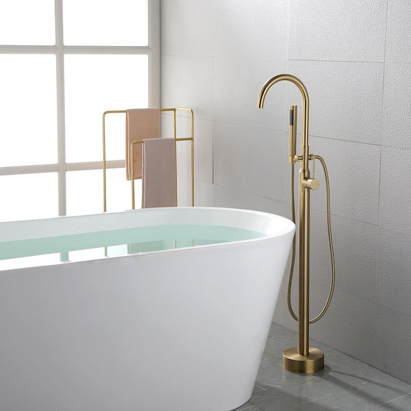 ACAD Modern Freestanding Single-Handle Floor-Mount Roman Tub Faucet Filler with Hand Shower in brushed gold