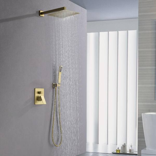 ACAD Single-Handle 2-Spray Patterns 10 in. Wall Mounted Square Dual Shower Faucet in Brushed gold ( Valve Included)