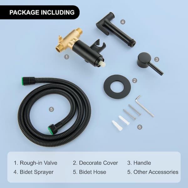 ALA Single-Handle Bidet Faucet with Sprayer Holder, Solid Brass Hot and cold water T-Valve and Flexible Hose in Black