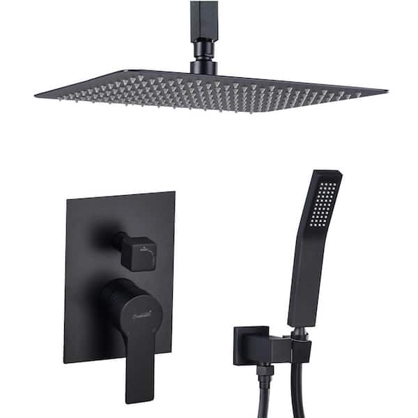 Aca 1-Spray Patterns 12 in. Ceiling Mount Dual Shower Heads with Rough-in Valve Body and Trim in Matte Black