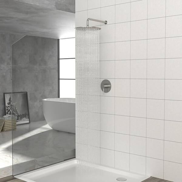 Aca 1-Spray Patterns with 1.8 GPM 10 in. Wall Mount Rain Fixed Shower Head in Brushed Nickel